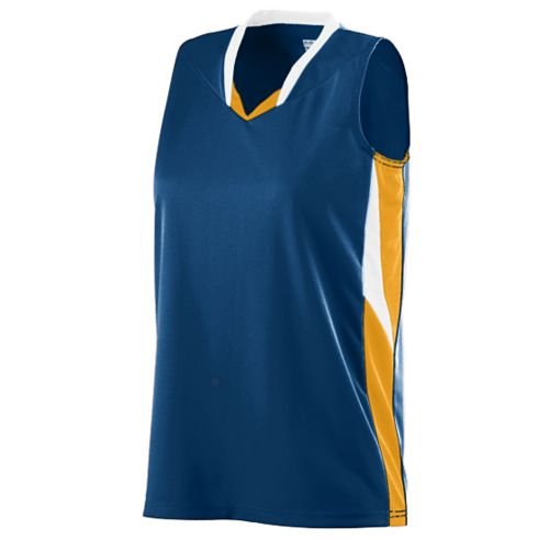 Girls Wicking Duo Knit Attack Volleyball Jersey Fabric: - 100% polyester wicking Duo Knit Features: - Wicks moisture away from the body - Heat sealed label - Contrast two-color modified self-fabric V-neck collar - Contrast two-color side panels with triangular contrasting insert - Double-needle hemmed sleeves and bottom Colors: Black/ Gold/ White, Columbia Blue/ Navy/ White, Dark Green/ Gold/ White, Lime/ Black/ White, Maroon/ Gold/ White, Navy/ Gold/ White, Orange/ Black/ White, Purple/ Gold/ White, Red/ Black/ White, Royal/ Red/ White, White/ Black Garment MeasurementsSizeYSYMYLChest Width (on half)14 3/4 16 1/4 17 3/4 Body Length 20 5/8 22 3/8 24 1/2 Measured from the highest point of shoulder For around the Chest measurement double the Chest Width (on half) measurement BECAUSE DYE LOTS VARY, WE CANNOT GUARANTEE COLOR MATCHING ON ALL SHIPMENTS Due to color differences in monitors, the colors on this site are for reference only. Please contact Epic Sports if you have any color questions.